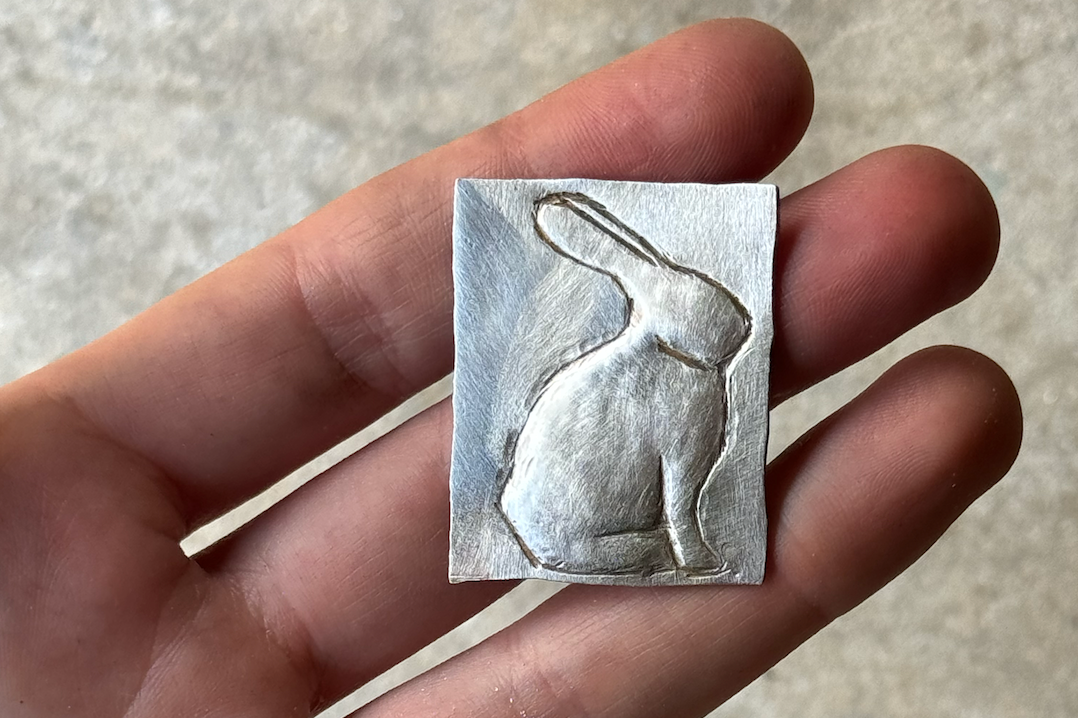 Image 1 of 2 Image 2 of 2 double bunny pendant $300.00 Add To Cart Added! hand wrought bunny form on one side, “BUNNY” on the other. sterling silver.contact me to add a chain for $200NCP2503 hand wrought bunny form on one side, “BUNNY” on the other. sterling silver.contact me to add a chain for $200NCP2503