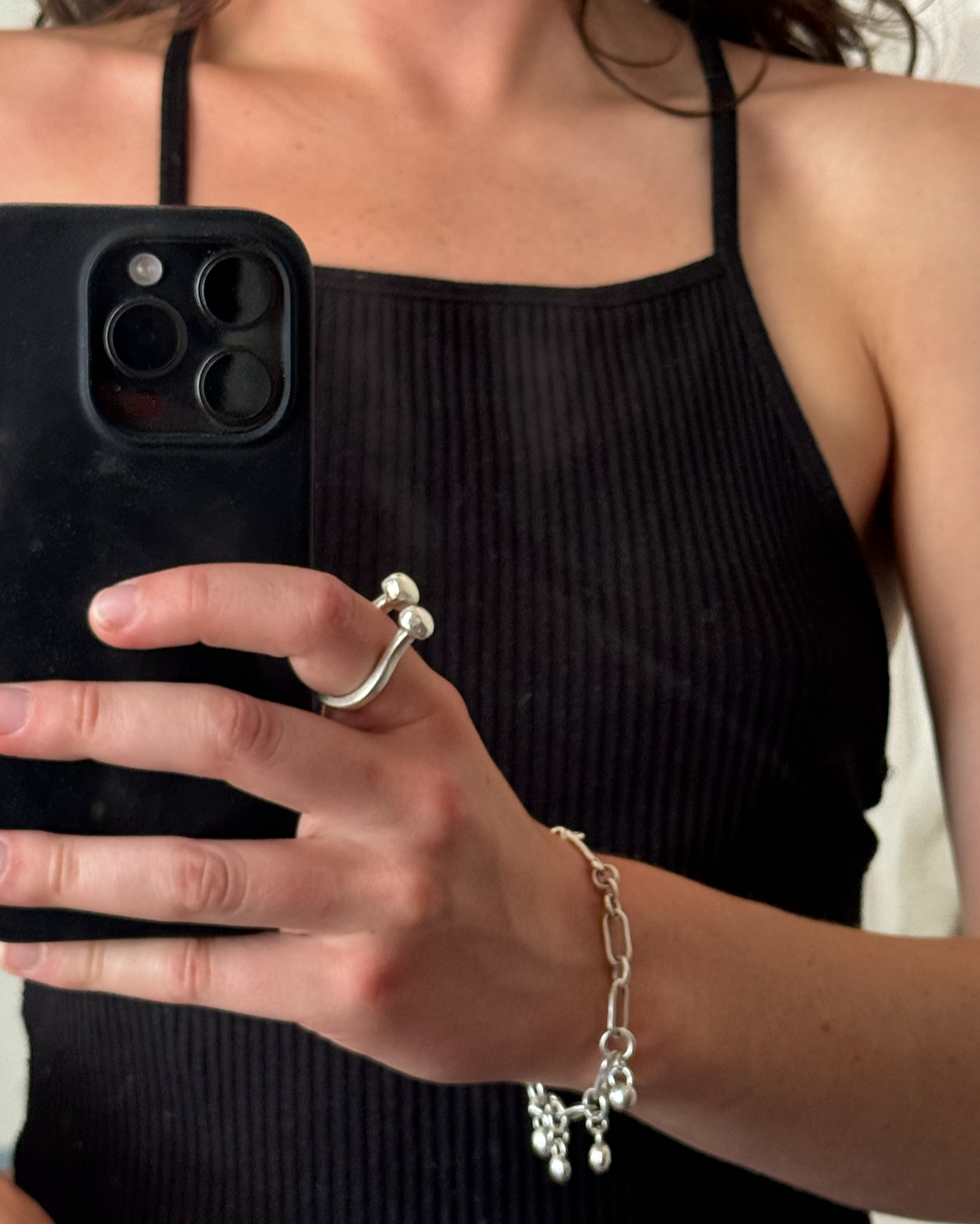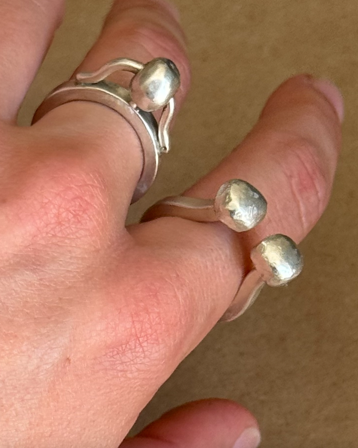 Image 1 of 4 Image 2 of 4 Image 3 of 4 Image 4 of 4 horseshoe ring $140.00 Add To Cart Added! sterling silver U-shaped band topped with 2 silver orbs.size 6.25NCR2502 sterling silver U-shaped band topped with 2 silver orbs.size 6.25NCR2502